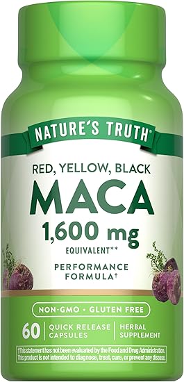 傳統草藥:這款草藥配方含有紅色、黃色和黑色瑪卡 快速釋放膠囊:每份份提供相當於 1,600 毫克瑪卡根** 誠實與透明:Nature's Truth 致力於提供最優質的健康產品